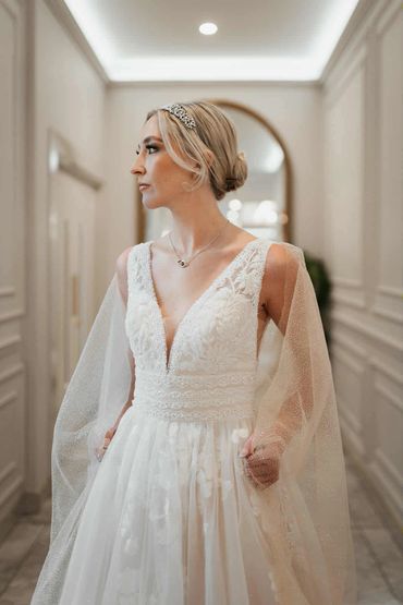 The Graceful WD157 is a true romantic’s dream. The bodice is crafted from layered beaded lace appliqués. Layers of soft tulle, sparkle layers and beaded lace complete this dreamy skirt. Her plunging neckline is finished with a diamante trim that continues into the thick strap, striking the perfect balance between simplicity and high impact. With a hidden zip to complete this goddess-inspired dress.