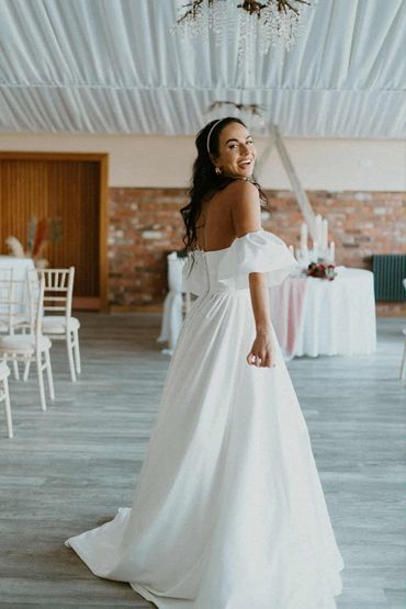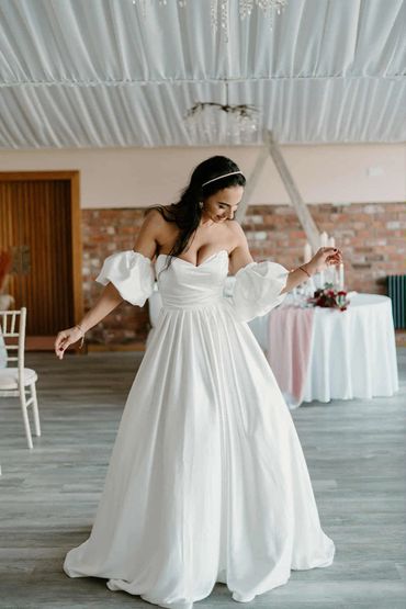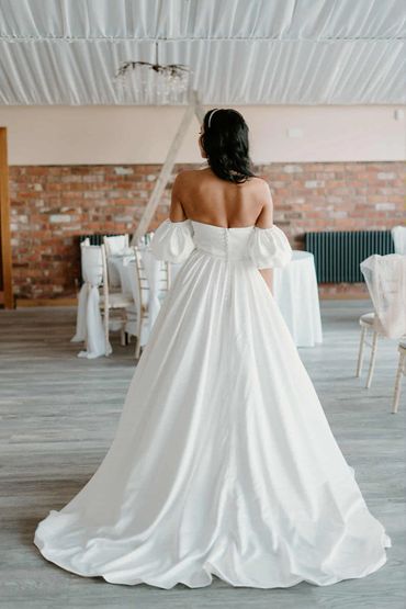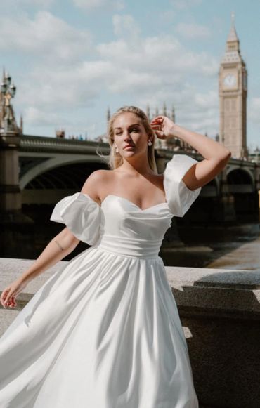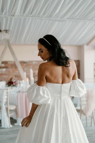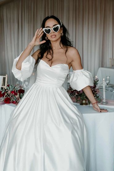 FUN, FREE & FABULOUS! Hello WD170, this gown is perfection for formal and intimate soirées alike… this gown is crafted for the modern bride who is looking for structure yet softness! The WD170 is a stunning canvas to build your unique bridal look, this gown comes with the gorgeous on trend puff sleeves but looks equally as beautiful with a fuller sleeve. A must have for your collection.